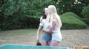Игры в пинг-понг быстро переросли в откровенный секс втроем. Две молодые красотки Amaris и Sasha Sparrow соблазнили старика и разделись догола. Девушки по очереди сделали глубокий минет. Ненасытные штучки смочили член слюнями. После оральных ласк красотки отдавались во влажные пилотки, громко крича от проникновения. Обе участницы достигли яркого оргазма от траха на свежем воздухе.